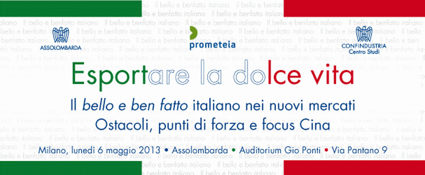 [:it] Made in Italy, “Esportare la Dolce Vita”. Presentata ieri a Expo 2015, da Confindustria e Prometeia, la sesta edizione…